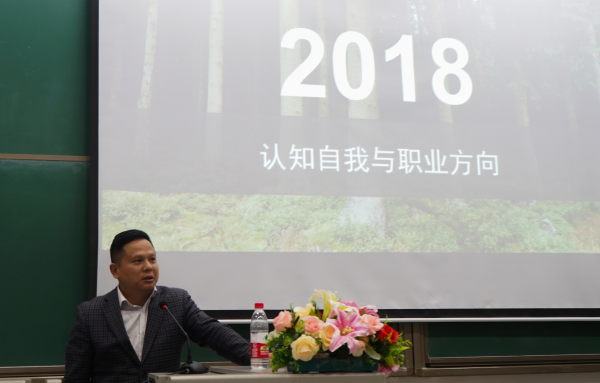 何博士以“认知自我,职业方向”为题,就自我性格、学科兴趣爱好和职业需求三方面展开报告。性格方面,正确认识优缺点,得以取长补短。学科方面,将学习和兴趣结合,激发动力。职业需求方面,全面认识自我,合理利用资源,选择适合自己的职业方向。随后,他例举了五个就业方向:从政型、从商型、技术型、学术型、其他(艺体)型,具体分析不同类型的人才适合的不同就业方向,并介绍了各个类型的对口职位,总结了各个类型的出色人才的成功案例,提出成功人士三大特点,勤学好进、积极乐观、越挫越勇。他建议同学们将这三点与实践相结合,不懈努力,升华自我。最后,他用诙谐的语言,从自身经历出发,告诫学生针对性地选择职业方向,感受职场氛围,结合自身优势和特点,坚持自己的职业选择。
