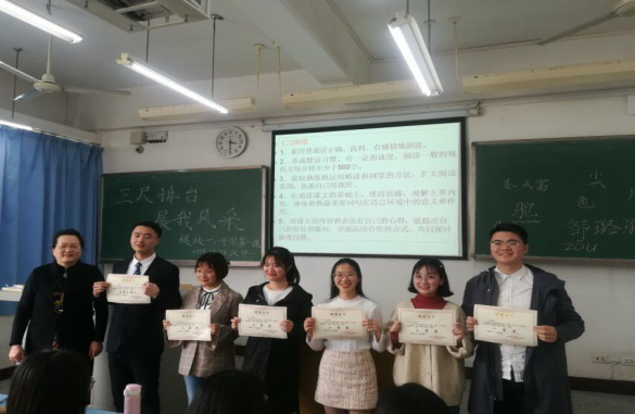 此前,分别以“开学第一课”与“课标解读”为主题进行了两次微课实训活动。本次微课实训以“说课”为主题,让同学们模拟教师,口头表述具体课题的教学设想及其理论依据,面对同行或教研人员,讲述自己的教学设计。经过层层角逐,张星、刘畅浛、刘磊、易越、力霜五位同学进入了决赛。最终,张星获得了一等奖,刘磊、刘畅浛获得了二等奖,易越、力霜获得了三等奖的好成绩。