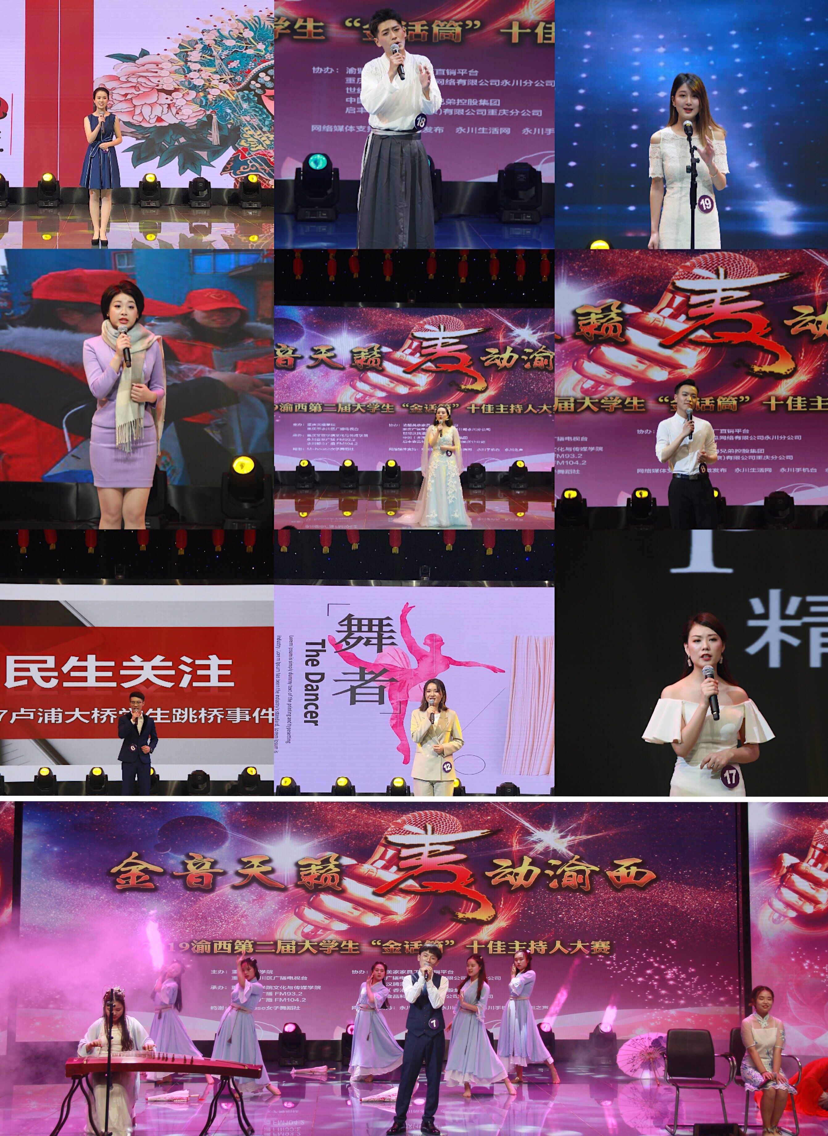 比赛现场进行全球直播,共分为风采展示、个性主持、才艺展示和话题评述四个环节。风采展示,来自渝西片区高校的20名选手依次在聚光灯下展现自我;个性主持,话题涵盖民生服务、文化、新闻评论等多个方面;才艺展示,选手多才多艺惊艳全场;话题评述,三位晋级选手展开了一场别开生面的即兴主持。经过四轮对决,重庆人文科技学院杨阳,开云官网易芳、我校教育学院王虹懿分别获得“铂金话筒”、“金话筒”、“银话筒”称号;开云官网谭寅卓、刘璐,重庆人文科技学院方梦玲等同学获得“十佳主持人”称号;重庆交通大学张婧、重庆大学城市科技学院周彦宏、重庆师范大学涉外商贸学院邓世渝、重庆水利电力职业技术学院于忠秋、重庆城市职业学院唐一航、重庆传媒职业学院熊显兰等同学获得“优秀主持人”称号;重庆财经学院罗喜月获得“最佳上镜奖”;重庆工程学院潘春全获得“最佳人气奖”。
