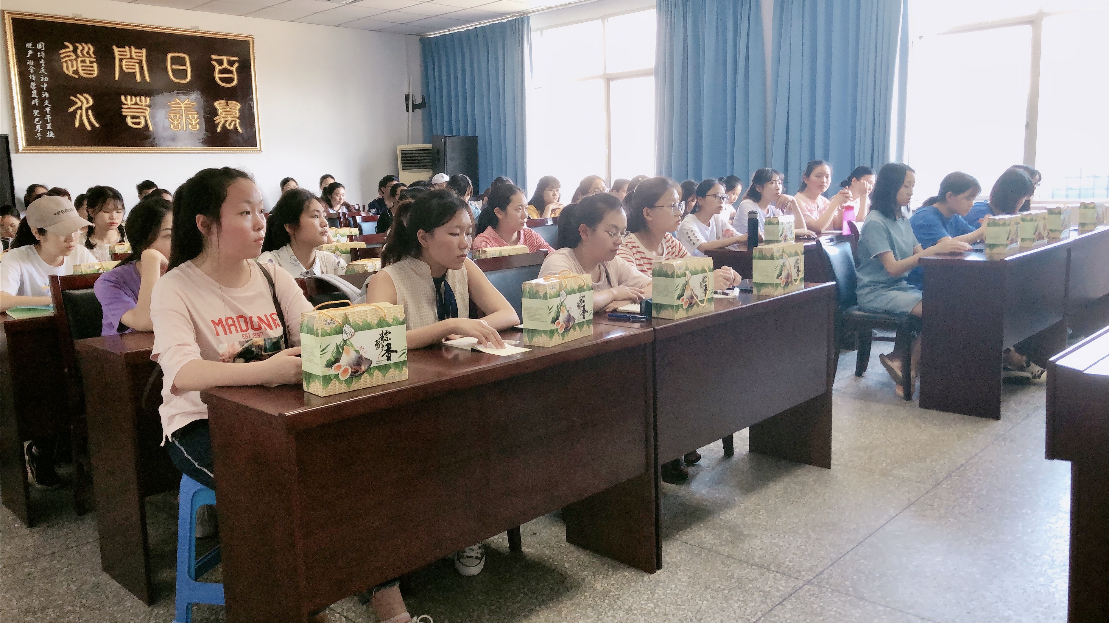 会上,白成良首先代表学院60余名教师向同学们表达节日祝福,随后讲解了端午节的四层含义:端午节是纪念爱国诗人屈原的节日,鼓励同学们更加深入了解端午节所寄寓的文化内涵;端午节是卫生节,春夏交替之时是传染病高发时节,挂艾叶可以有效避免疾病发生;端午节是体育节,端午竞渡能对强身健体、民众团结起到很好的促进作用;端午节也是美食节,粽子是端午最具代表性的美食。他建议同学们端午节要向亲朋好友送去诚挚祝福,加深感情;叮嘱大家节假游玩时注意安全,把生命健康放在首位。余建荣、张梓涵、李帅老师则仔细询问同学们在学习和生活上的情况,解答他们的疑惑,提出未来的期望,希望同学们能够合理利用时间,用优秀传统美德规范自己言行,树立长远目标,成就美好人生。会后,老师们向同学们赠送粽子、咸鸭蛋等节日慰问品,表达学校和学院的关心。