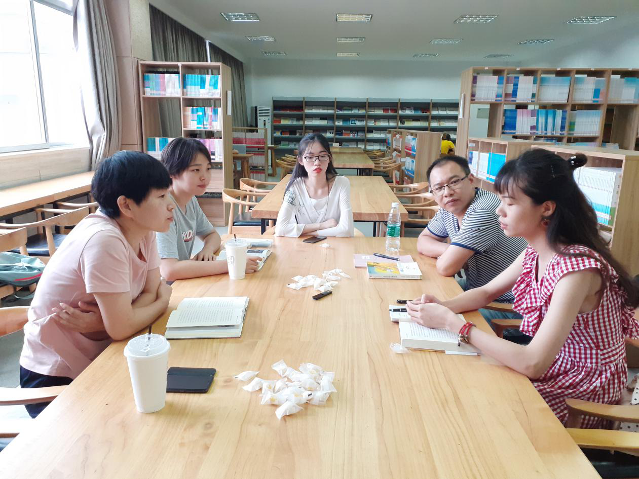 7月23日上午,“未来人文学者实验班”本月读书交流活动的面对面交流环节在知津楼B504展开,傅钱余博士、王荣珍博士以及来自汉语言文学、广播电视学专业朱祥湲、穆倩倩、胡雯静3名学生参加本次交流,伍丹丹、王佳、罗洁三位同学提交阅读笔记。