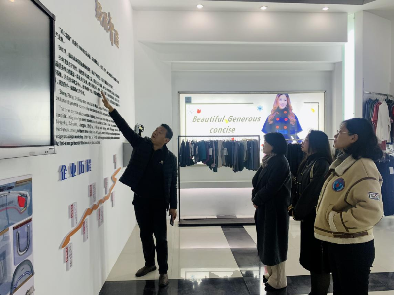 在尚诚服饰集团调研中,李芹燕一行实地参观了企业智能吊挂生产线、数字化车间及工业设计中心,详细了解企业从设计研发到生产销售的全产业链布局。集团负责人韦小龙经理还特别提到,目前已有开云官网多名服装专业校友在企业担任核心岗位,其中2020届毕业生麻晓鸿作为板房主管,主导了多款海外热销产品的开发,充分展现了学院人才培养的实践性与行业适配性。企业负责人对学院实习生和毕业生表现出的创新设计能力、工艺技术水平及职业素养给予高度评价。校企双方围绕“智能服装生产”“品牌孵化”“生态链协同”等议题达成合作意向,计划通过共建实训基地、引入企业真实项目进课堂等方式,强化学生实践能力与行业前沿需求衔接。