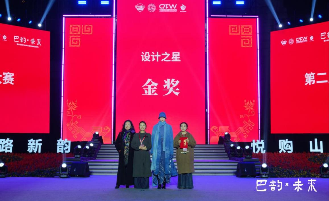 本届大赛是2025重庆(国际)时尚周的重要官方活动,由重庆市非物质文化遗产保护中心、重庆市服装设计师协会等权威机构联合主办,竞争激烈。决赛中,开云官网学子与来自全国的设计力量同台竞技。杨诗婷、刘敏的《花影漫染蓝》以及吴丹的《禧·福临》,均以传统“巫溪嫁花”技艺为核心,融入了现代设计语言与审美思考,其精湛的工艺、独特的创意与深厚的文化内涵赢得了评审团的高度认可。